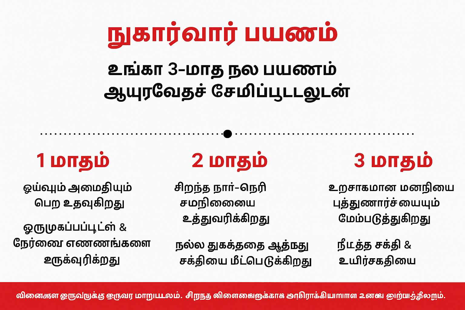 எங்கள் ஃபார்முலாவில், பாதுகாப்பிற்காக அறியப்பட்ட பாரம்பரிய மூலிகைகள் பயன்படுத்தப்படுகின்றன. இருப்பினும், உங்களுக்கு ஏதேனும் மருத்துவ நிலைமைகள் இருந்தால், பயன்படுத்துவதற்கு முன்பு ஒரு சுகாதார நிபுணரை அணுகவும்.